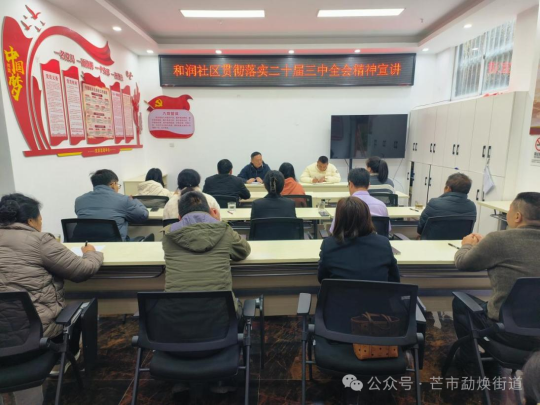 为推动党的二十届三中全会精神深入人心,更好地用党的二十届三中全会精神统一思想、凝聚共识,提高政治站位,确保学习宣传全会精神走深走实、见行见效。连日来,勐焕街道各社区持续组织开展学习宣传贯彻党的二十届三中全会精神主题宣讲活动。
