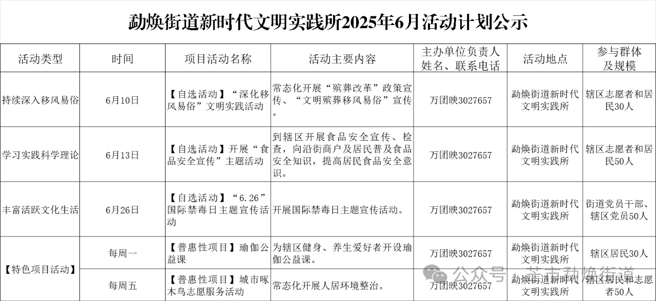勐焕街道2025年6月新时代文明实践志愿服务计划