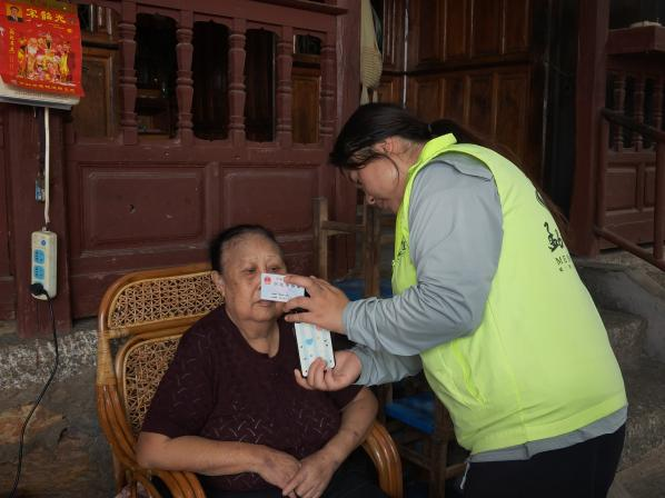 为确保帮办代办服务“不漏一户、不落一人”,西南里社区前期扎实开展底数摸排工作,组织工作人员逐户排查辖区老年群体情况,重点标记出孤寡、独居及行动不便的老人,并根据老人作息规律制定了入户认证计划。入户认证时,社区工作人员提前携带好手机、资料等,抵达后耐心指导老人调整坐姿、配合镜头,一步步协助完成人脸识别、信息核对等认证流程;对于部分因听力衰退、肢体活动不便卧病在床难以配合的老人,工作人员更是俯下身、放慢语速,通过反复示范、细心引导,直至认证成功。