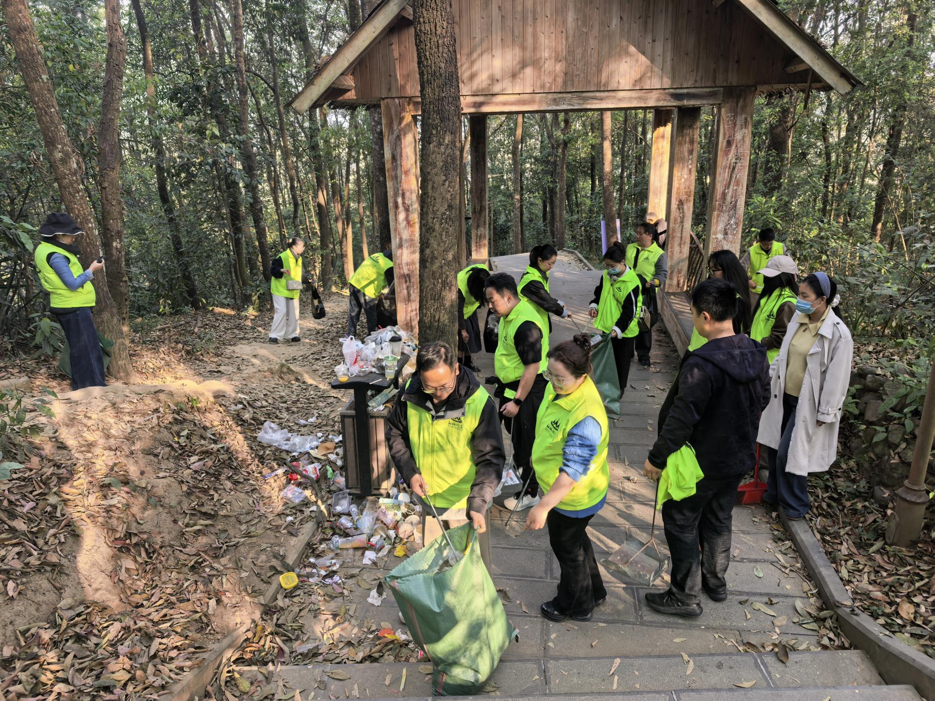 勐焕大金塔作为芒市地标性景区,春节期间游客络绎不绝,登山步道是市民祈福、游客打卡的必经之路 。此次整治行动,重点针对步道沿线的卫生死角、绿化带缝隙及休息平台,集中清理食品包装袋、矿泉水瓶、烟头等各类生活垃圾,并及时清运步道两侧枯枝落叶,累计清理各类垃圾0.15吨,让登山步道焕然一新。