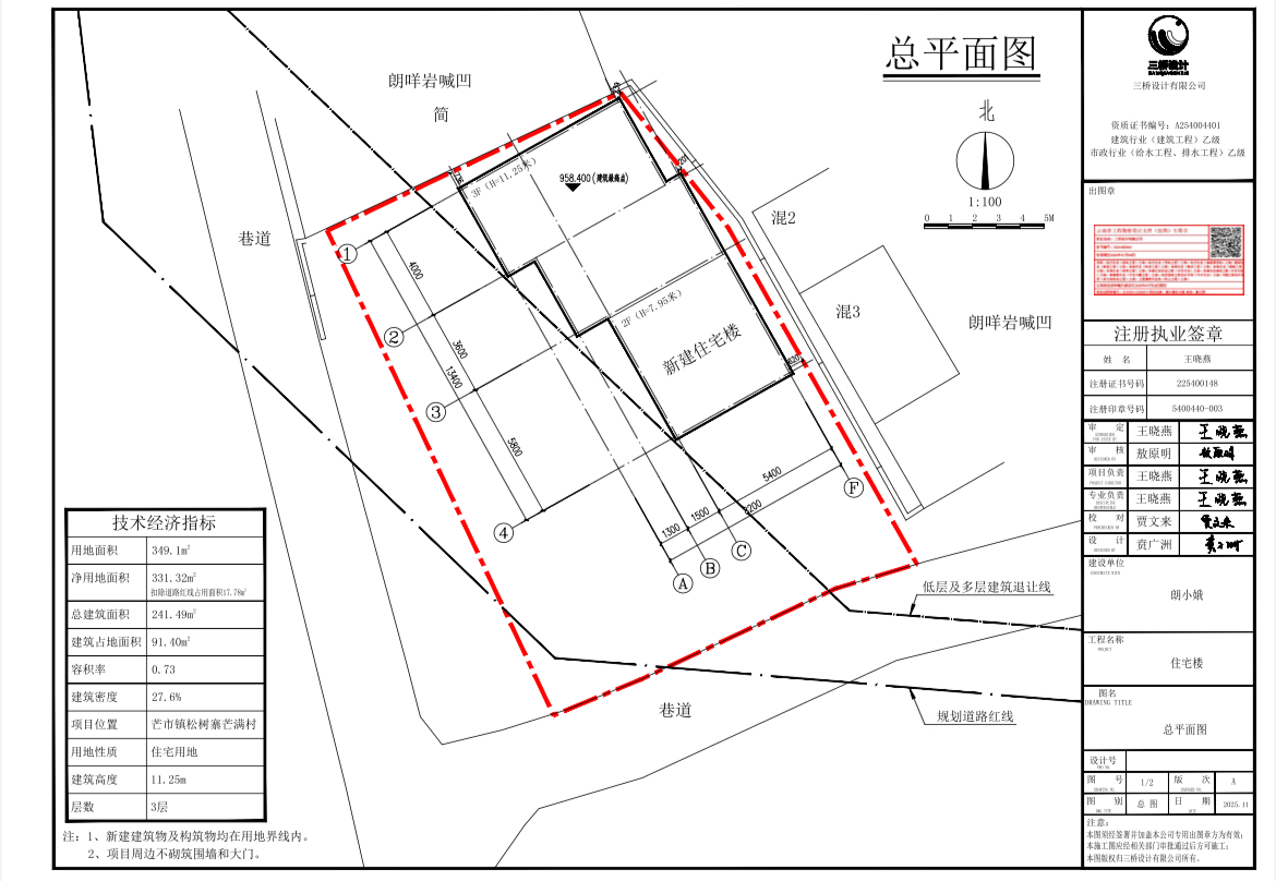 芒市居民朗小娥住宅楼总平面布置图公示