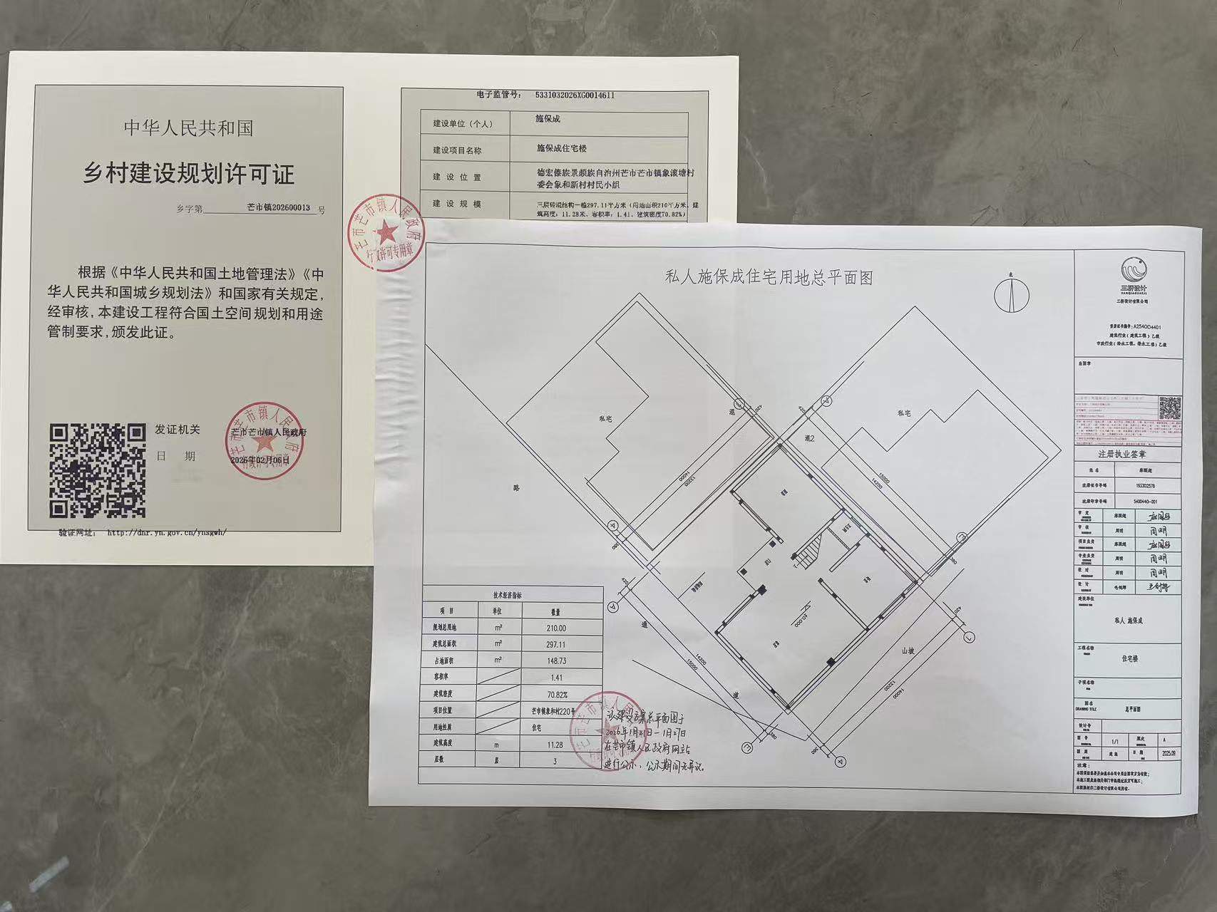 施保成规划许可证及住宅楼总平面布置图公示