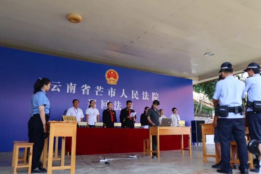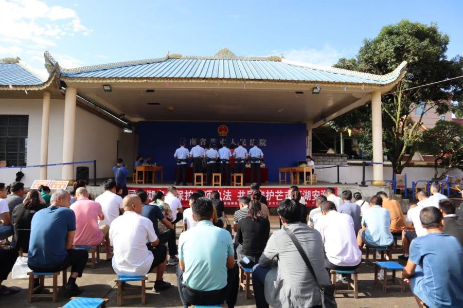 9月26日,芒市人民法院走进涉及非法采挖河砂重点区域,在芒市镇大湾村委会依法公开开庭审理被告人肖某某、张某某、项某某非法采矿罪一案。大湾村干部及部分村民、芒市水利局工作人员、部分人大代表、政协委员共计70余人旁听了此次庭审。