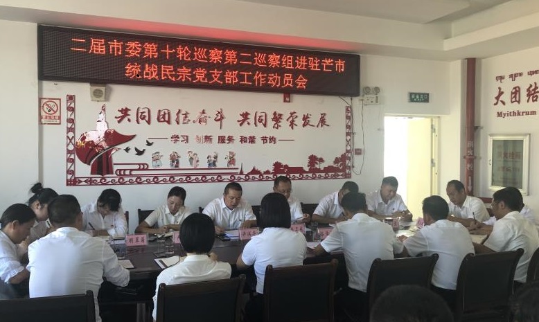 根据市委巡察工作统一安排部署,2019年10月8日,市委第二巡察组召开进驻市委统战部民宗党支部巡察工作动员会。会上,市委第二巡察组组长许洪华根据中央、省委、州委精神和市委要求,坚定不移深化政治巡察作了讲话,市委常委、市纪委书记、市委巡察工作领导小组组长王卫东就配合做好巡察工作提出要求。会议由市委常委、统战部部长谷学平主持,并代表市委统战部民宗局作表态发言。市委第二巡察组全体成员、芒市委统战部民宗局全体干部职工参加会议。