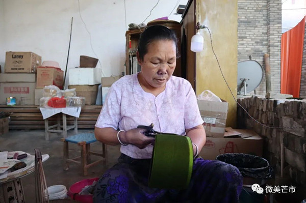 金包头全程都是手工制作,塔扇叶难采摘,染色的颜料味道呛鼻且容易沾染皮肤,这些制作过程中的难题,在冯咩岩哏看来都是小事。