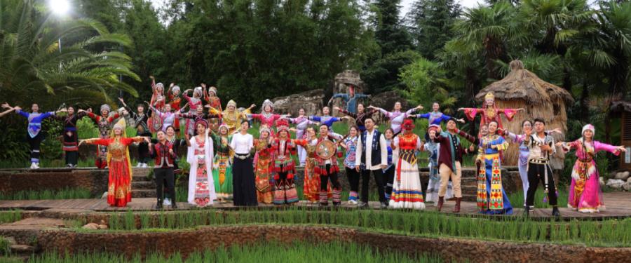 云南民族村各族青年歌颂党、歌颂祖国。张彤 摄