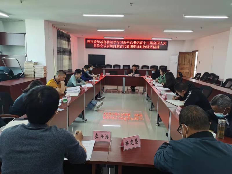 3月14日上午,芒市委统战部召开会议,专题学习习近平总书记在十三届全国人大五次会议参加内蒙古代表团审议时的讲话精神。芒市委统战部全体干部职工15人参加。