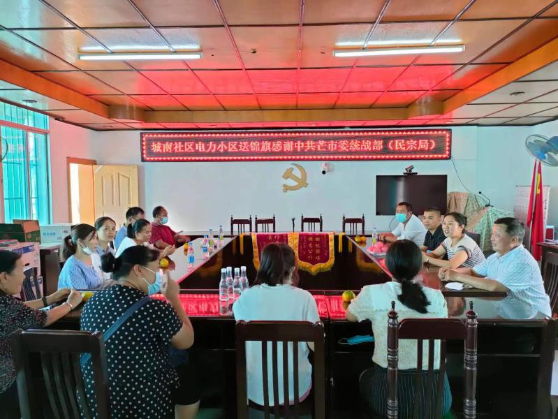 2022年9月29日,城南社区电力小区居民代表将写有“好公仆有求必应,尽职责心系小区”“为人民排忧解难,做人民满意公仆”的2面锦旗送到城南社区,对城南社区和挂钩单位芒市委统战部(民宗局)想群众所想、急群众所急,为群众办实事表达了由衷的感谢。