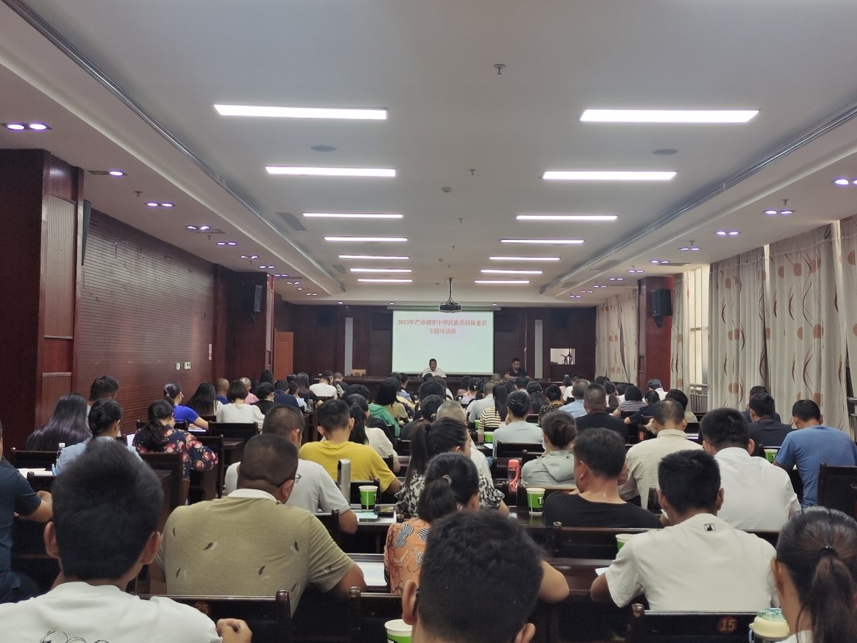 为深入学习贯彻党的二十大精神和中央民族工作会议精神,有效推进“打造新时代民族团结进步创建工作升级版”,2023年8月30日至31日,芒市在市委党校举办“2023年铸牢中华民族共同体意识专题培训班”。市委常委、统战部部长祁叶弄作开班动员讲话,市委统战部副部长、市民宗局局长王煜丞主持。各乡镇(街道、农场)、市直机关单位民族宗教具体工作人员和党外代表人士共120人参加培训。