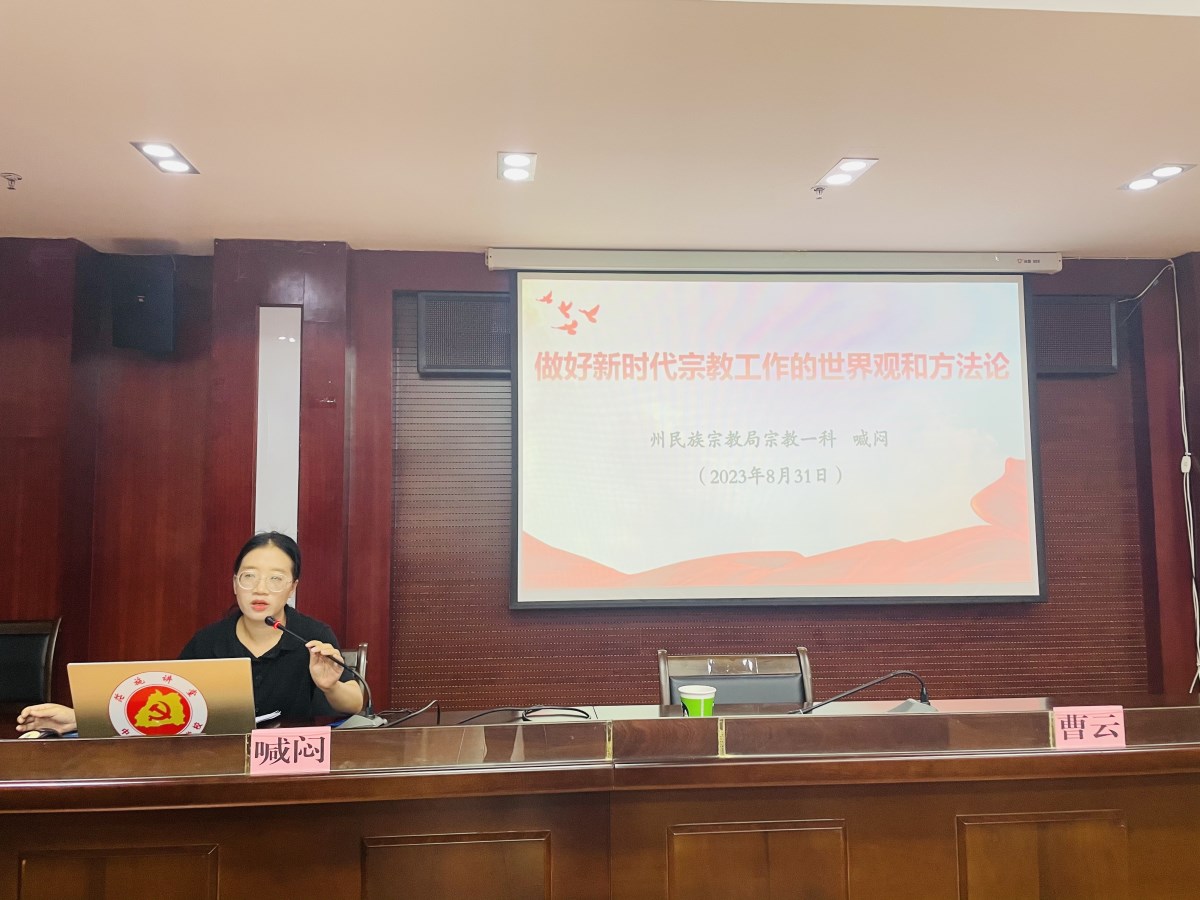 德宏州民族宗教事务局宗教一科科长喊闷以“做好新时代宗教工作的世界观和方法论”为题作宗教工作培训,进一步阐述“坚持我国宗教中国化方向”的深刻内涵和意义,提出今后抓好宗教工作的具体指导和建议。