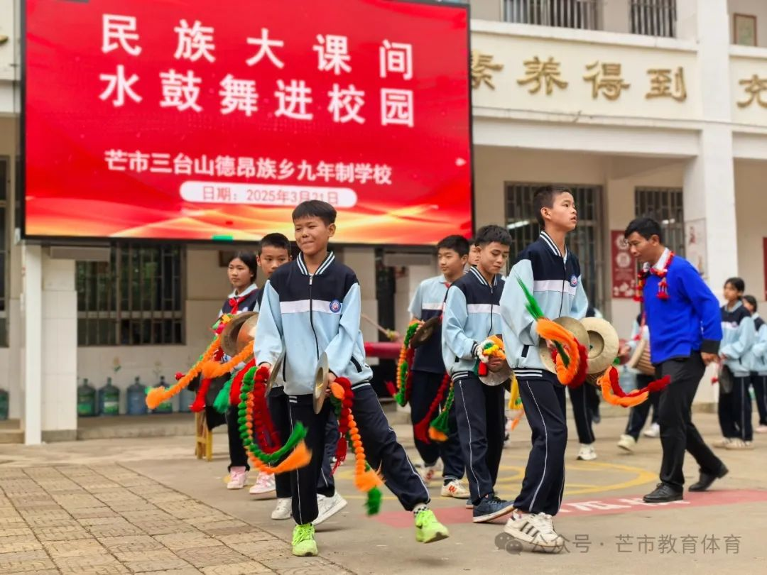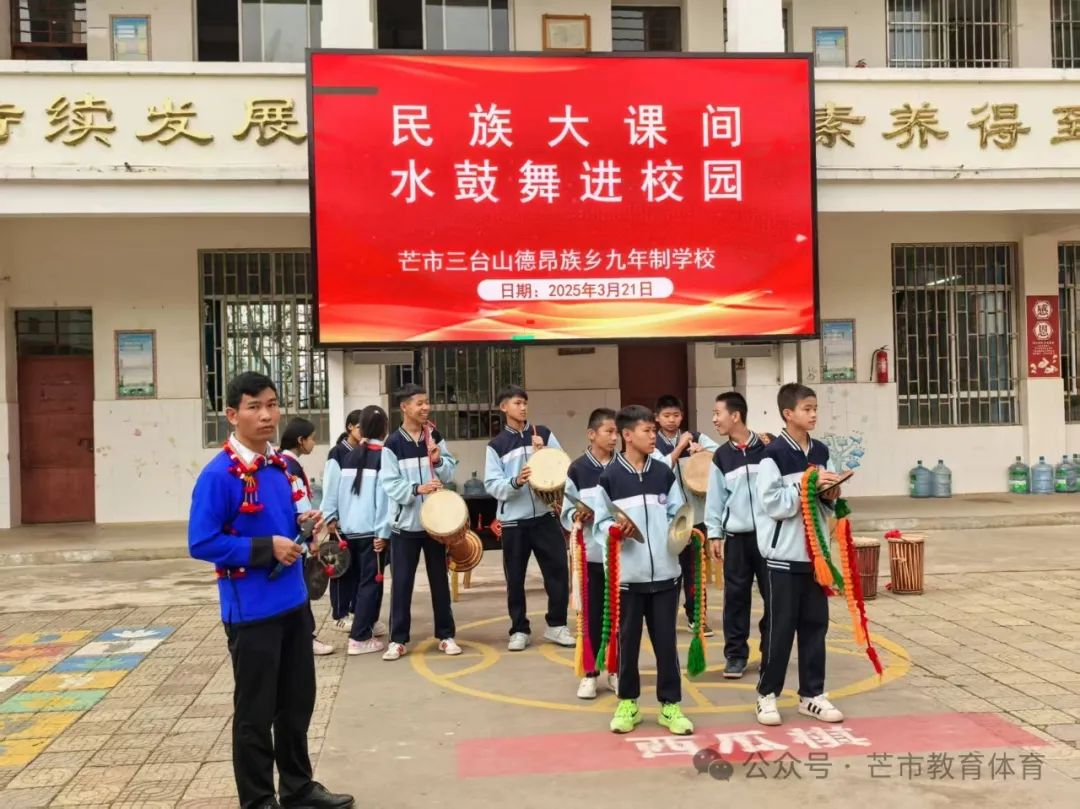 德昂族非遗文化水鼓舞是德昂族传统文化中的瑰宝,具有深厚的历史渊源和独特的艺术魅力。它不仅丰富了中华民族的文化宝库,也为世界文化的多样性贡献了自己的一份力量。周五课间操,赵腊退老师向全体师生详细讲解水鼓舞的历史渊源、舞蹈动作,传承与保护。同学们精神饱满地与赵腊退老师纵情起舞,随着激昂的鼓点,舞动、转圈,变换队形,展现出水鼓舞的魅力。通过亲身参与,学生们体验到了水鼓舞的乐趣,也加深了对民族文化的理解和热爱。