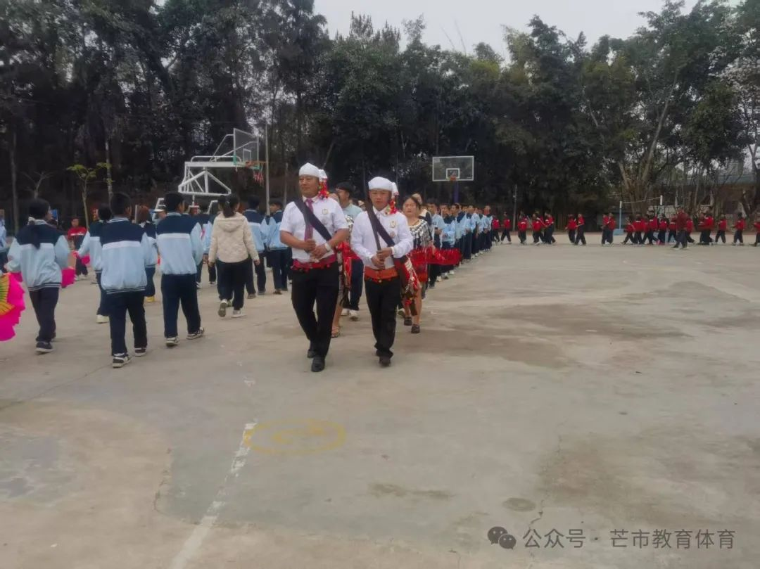 为了让学生们更加直观地感受目瑙纵歌的魅力,三台山乡邦外村党总支书记李勒腊现场示范了舞步,并通过“哦然”欢呼声与鼓点节奏的互动向全体师生详细讲解景颇族刀舞的历史渊源、文化内涵和传承意义及动作,亲身示范并对部分师生进行一对一动作指导,纠正。同学们通过观看、体验,让学生们在接触非遗民族文化的同时,感受其魅力,弘扬民族精神,弘扬民族文化特色。学生们在肢体律动中尽情享受“万人之舞”的震撼。在李书记的带领下,全体师生踩着鼓点欢快地起舞,脸上洋溢着幸福的笑容。