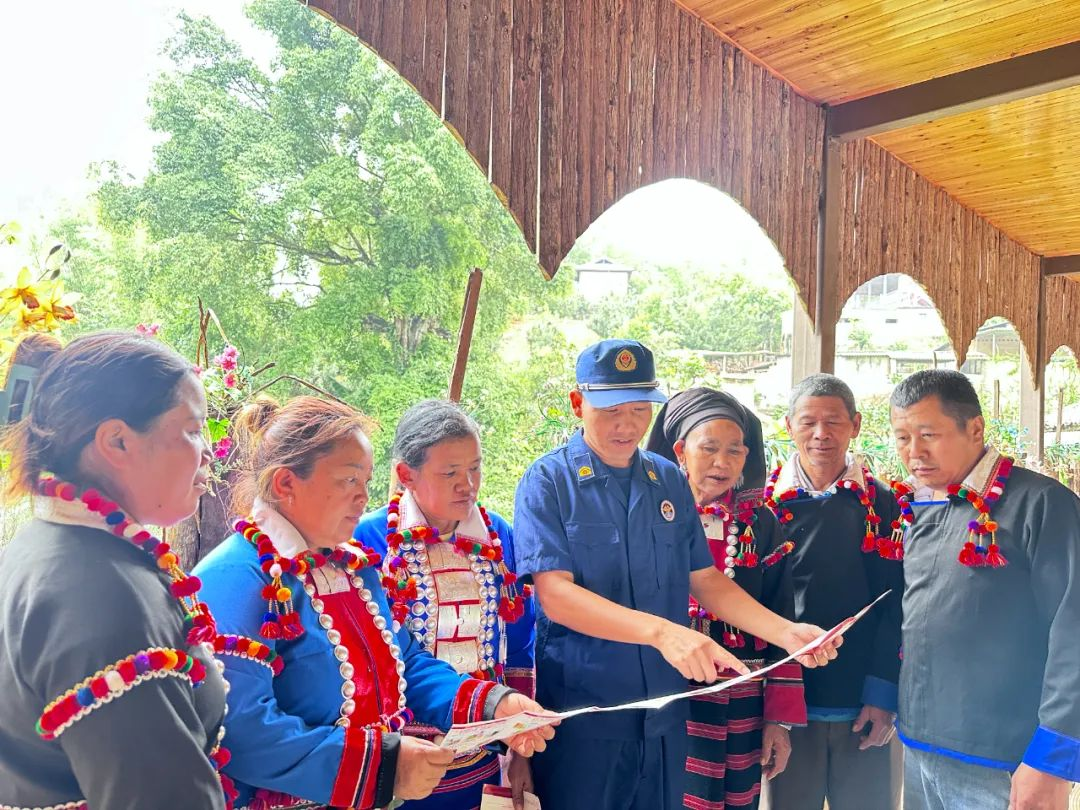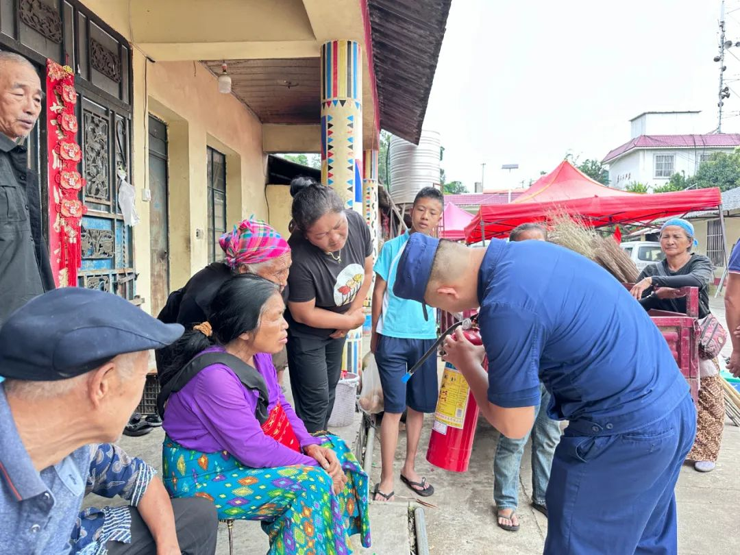 德昂村寨依山而建,木质结构房屋集中,用火用电安全尤为重要。消防宣传员利用傍晚群众围坐火塘闲话家常的场景开设课堂,开展“火塘夜话 消防同行”主题活动。他们用“普通话+德昂语”,讲解家庭防火要点、初期火灾扑救技巧及疏散逃生知识,结合德昂族生活习惯,重点剖析柴火堆放、火塘使用、祭祀用火等场景的火灾风险。通过剖析乡村真实火灾案例,用“身边事”警示“身边人”,让“人走火灭、灶台清空”等安全理念深入人心。