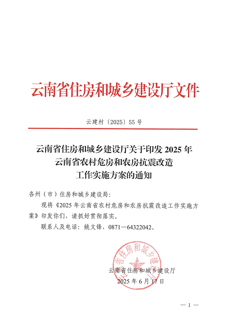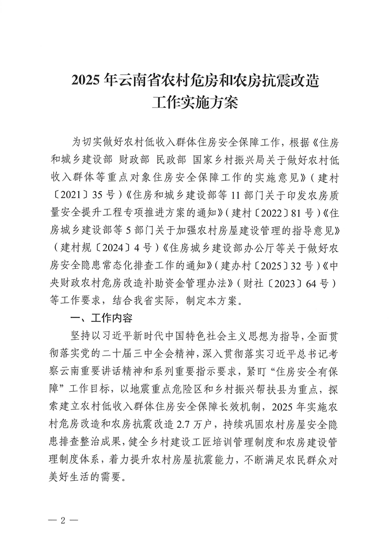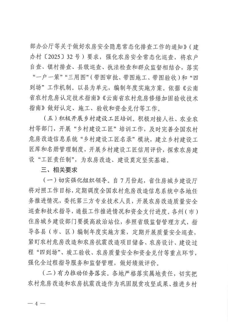 关于印发2025年云南省农村危房和农房抗震改造工作实施方案的通知