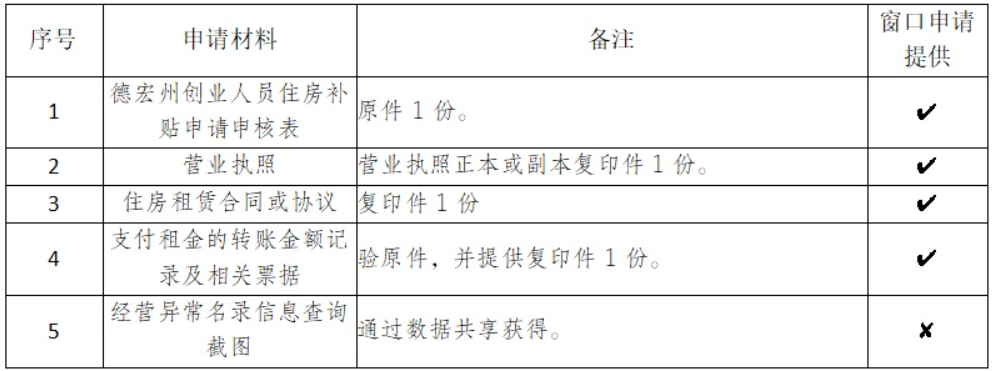 德宏州人民政府办公室关于印发《德宏州实施就业创业“引凤计划”五条措施》的通知(德政办发〔2025〕18号)规定,妥善解决创业人员住房问题,对住房困难且符合条件的创业者进行住房保障,各县市拿出部分保障房优先作为州内外创业青年的过渡性住房和临时安置用房;对无法安排保障房,由住房困难创业者自行解决住房的,创业2年内(自工商登记注册之日起计算)由州级财政给予住房补贴,补贴标准按每人每月300元给予定额补助。