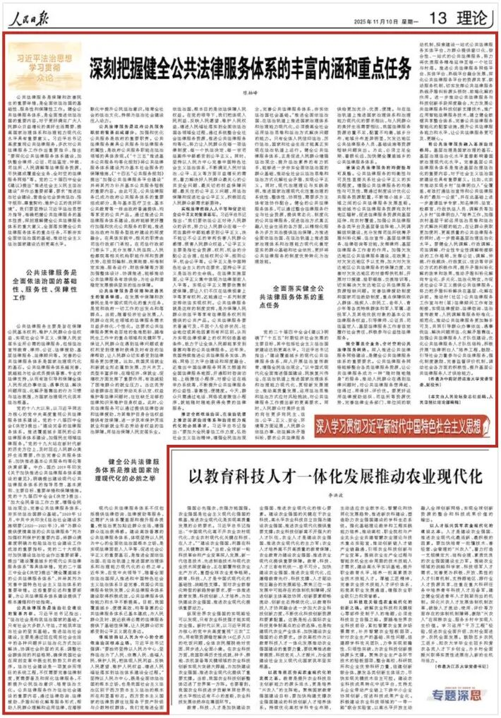 全面落实健全公共法律服务体系的重点任务党的二十届四中全会《建议》明确了“十五五”时期经济社会发展的主要目标,其中包括社会主义法治国家建设达到更高水平。习近平总书记指出:“建设覆盖城乡的现代公共法律服务体系,深入开展法治宣传教育,增强全民法治观念。”以中国式现代化全面推进强国建设、民族复兴伟业,在法治轨道上推进国家治理体系和治理能力现代化,贯彻新发展理念、推动高质量发展,运用法治思维和法治方式应对风险挑战,对公共法律服务工作提出新的更高要求。同时,人民群众对美好生活的向往更多向民主、法治、公平、正义、安全、环境等方面延展,人民群众依法办事、依法解决矛盾纠纷,要求公共法律服务供给更加充分、优质、便捷。与在法治轨道上推进国家治理体系和治理能力现代化的要求相比,与人民群众的美好生活需要相比,我国法律服务资源总量不足,配置不均衡,城乡分布、地域分布差异明显,欠发达地区公共法律服务人员、基础设施等资源短缺问题突出。为此,必须立足全局、着眼长远,加快健全覆盖城乡的公共法律服务体系。增强公共法律服务的均衡性与可及性。公共法律服务的均衡性与可及性直接关系社会公平正义的实现程度。增强公共法律服务的均衡性与可及性,需通过制度设计优化公共服务资源配置,不断缩小城乡、区域之间的公共法律服务发展差距。推动城市公共法律服务资源向农村地区辐射,促进法律服务资源向基层延伸、向农村覆盖,加强公共法律服务各类平台及基层普法阵地、人民调解组织建设,充分发挥司法所统筹矛盾纠纷化解、法治宣传、基层法律服务、法律咨询等功能,发挥律师、基层法律服务工作者的作用。加强欠发达地区公共法律服务建设,在政策上对欠发达地区予以支持,加大对欠发达地区公共法律服务的保障力度,完善对欠发达地区的对接帮扶机制,开展对口援建、挂职锻炼、交流培训等,切实解决欠发达地区公共法律服务资源短缺问题。完善法律援助制度和国家司法救助制度,重点保障低收入群体、残疾人、农民工、老年人、青少年等各类特殊群体和军人军属、退役军人及其他优抚对象的基本公共法律服务权益,引导律师、公证员、司法鉴定人、基层法律服务工作者自觉履行社会责任,积极参与公益性法律服务。健全覆盖全业务、全时空的公共法律服务网络。深入推进公共法律服务网络建设,是健全公共法律服务体系的重要要求。公共法律服务网络能够整合各类法律服务资源,让公共法律服务成为一种“随时随地随身”的服务,推动人民群众在遇到法律问题时,对公共法律服务想得起、信得过、用得好、评价优。要更好运用法律援助组织、司法所等资源优势,完善法律业务部门、单位间的联动机制,探索建设一站式公共法律服务实体平台,为群众提供窗口化、综合性、一站式的公共法律服务,努力将优质服务精准延伸至每一个社区与村落。推进公共法律服务网络平台、实体平台、热线平台融合发展,深化公共法律服务平台的资源共享、联动服务机制,切实发挥公共法律服务热线矛盾纠纷源头预防、前端化解的作用。进一步推动公共法律服务与科技创新手段深度融合,大力发展公共法律服务科技创新支撑技术,推广应用智能法律服务技术,建立健全数据共享整合体系,完善公共法律服务智能化的配套设施,提升公共法律服务能力和水平,让公共法律服务更可及、更暖心。将公共法律服务融入基层治理格局。基层治理是国家治理的基石,基层治理法治化水平直接影响着国家治理现代化水平。完善基层公共法律服务体系是推进基层治理法治化的重要内容,对于社会主义法治国家建设也具有重要意义。比如,北京市推动实现乡村“法律明白人”全覆盖,有效打通法治宣传和公共法律服务的“最后一公里”,并在此基础上进一步邀请法学专家、知名律师、法官、检察官、行政执法人员、调解员等加入乡村“法律明白人”培养工作,加强农村基层干部运用法治思维和法治方式解决问题的能力,在让群众获取更加便利、更高质量的公共法律服务的同时,进一步提高基层治理法治化水平。要健全人民调解、行政调解、司法调解、行业性专业性调解衔接联动的工作格局,发挥公证、调解、仲裁、行政裁决、行政复议、信访等非诉讼方式的积极作用,提升矛盾纠纷化解的效率和效果,推动矛盾纠纷化解向专业化、多元化、法治化转变,为促进社会公平正义提供公共法律服务,努力把矛盾纠纷解决在基层、化解在诉前。推动村(社区)公共法律服务工作室与村(居)法律顾问工作有效衔接,实现法律援助、法律咨询、法治宣传教育、人民调解等服务标准化、规范化,推动公共法律服务更加触手可及,共同引导群众办事依法、遇事找法、解决问题用法、化解矛盾靠法。加强公共法律服务人才队伍建设,优化公共法律服务人才队伍结构,积极开展“法律明白人”培养工程,鼓励、引导社会力量参与公共法律服务,强化制度激励,完善监督评价机制,调动社会各方面的积极性,提升基层公共法律服务人才供给能力。