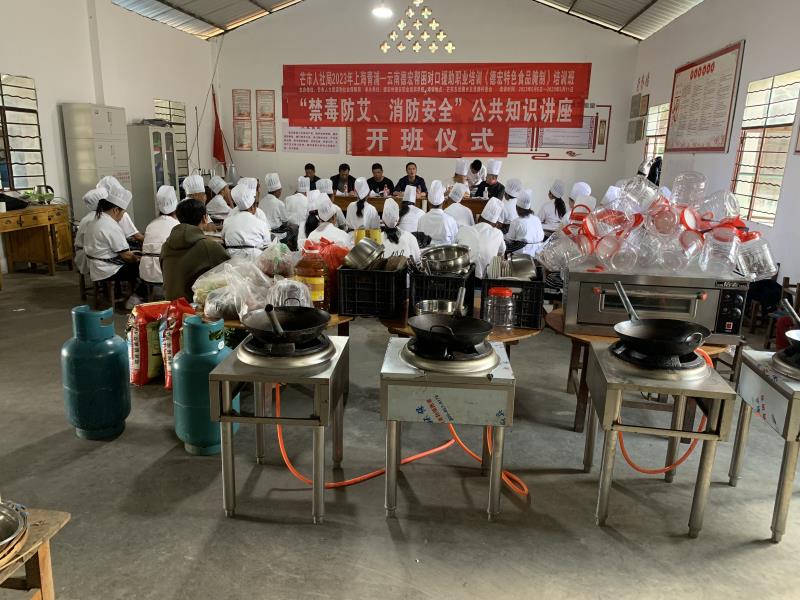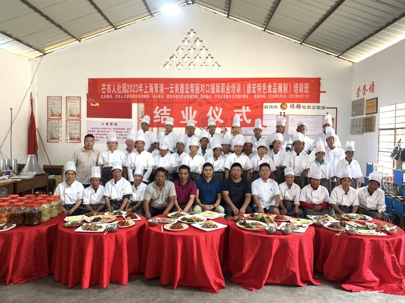 在各级领导的关怀和支持下,根据芒市人力资源和社会保障局的工作部署,德宏州捷安职业培训学校经过精心的筹备,于2023年05月05日在芒市五岔路乡五岔路村民委员会帮岭小寨村上海青浦-云南德宏帮对口援助职业培训德宏特色食品腌制培训正式开班。本期德宏特色食品腌制共参加培训44人。