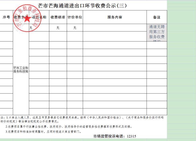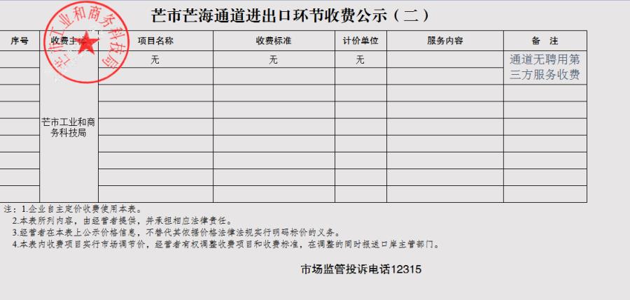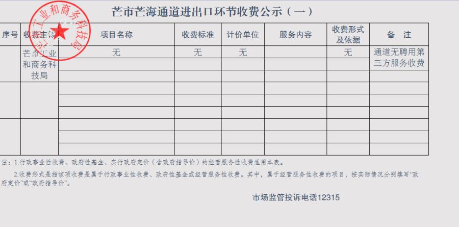 一、芒市芒海通道进出口环节收费公示