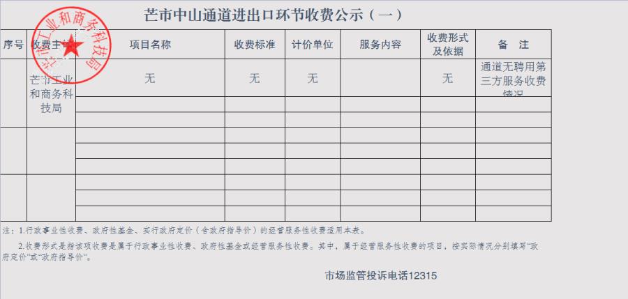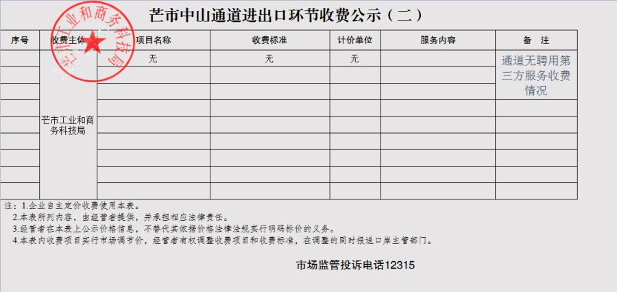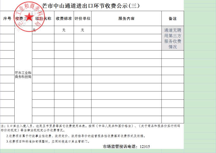 二、芒市中山通道进出口环节收费公示