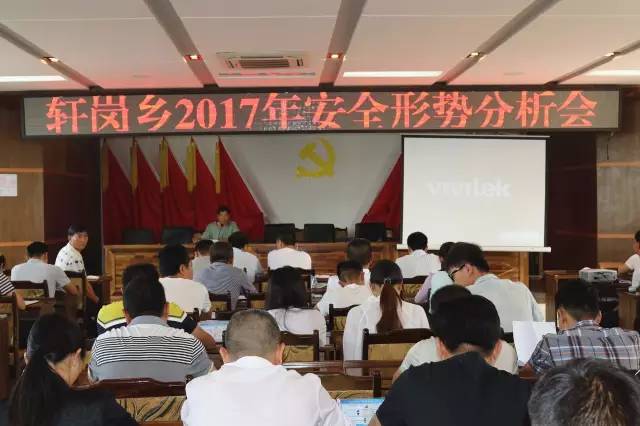 为全面提升全乡人民公众安全感,及时分析和研究当前的安全形势,5月22日上午,轩岗乡在乡为民服务中心二楼会议室组织召开2017年度安全形势分析会,全乡领导干部、驻村工作队及村“三委”干部共计80余人参加会议,会议由乡党委副书记、副乡长朗二喊主持。