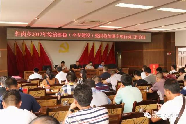 为迎接党的十九大胜利召开,深入学习贯彻省、州、市政法工作会议精神,更好的建设和谐轩岗,宜居家园,提升人民群众的安全满意感,8月7日上午,轩岗乡组织召开2017年综治维稳综合会议。全乡干部职工,各村(居)委会书记、主任,中小学、卫生院、糖厂负责人等共计90余人参加会议。会议由乡党委副书记、副乡长朗二喊主持。