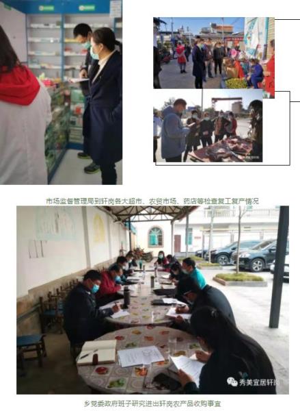 乡农业服务中心、市场监督管理局四所、安监站等部门每天深入各生产线监督指导疫情防控期间的生产经营,调研存在问题,研究对策措施,要求各行业、各部门和个体户在复工复产期间要服从疫情防控整体大局,做好日常防护防控,定期消毒,尽量避免聚集性生产,确保每人佩戴口罩,把各项措施做实、做细、做到位。