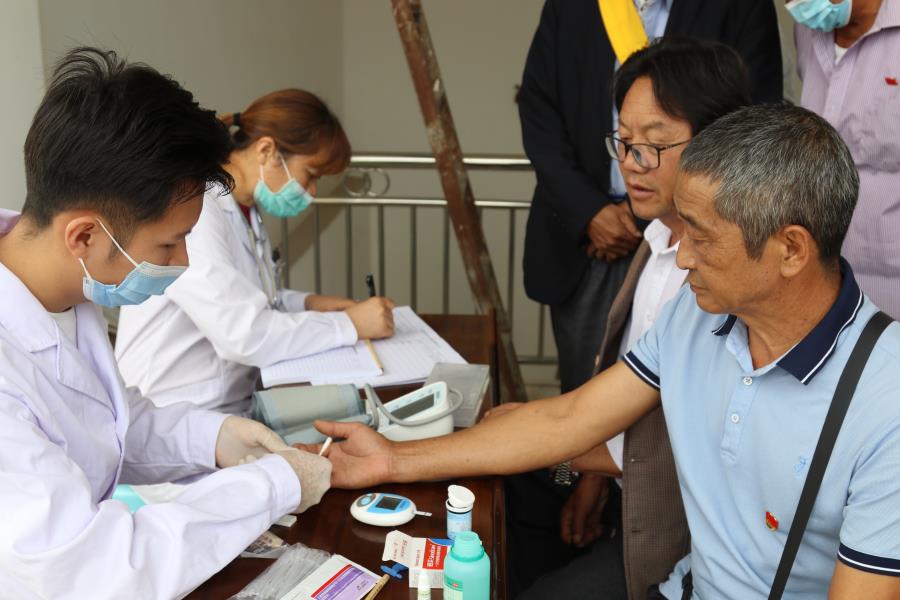 活动开始前,乡卫生院对老党员、老干部进行量体温、量血压、测血糖等,为老人们简单义诊,提出养身建议。