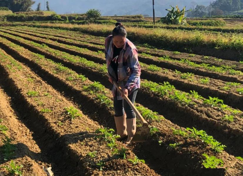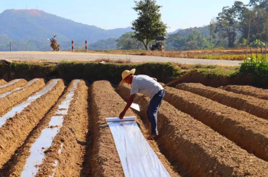轩岗乡的公路两旁,放眼望去,田坝里,都是农民忙碌的身影,有些种植较早的马铃薯已经破土而出,农户们顶着烈日正在忙碌地种植,大家都争取在最佳节令种下马铃薯。走进丙茂村委会拉门村小组朗咩岩旺明家的田地里,她和丈夫正忙着种植马铃薯。今年她家除了在自家田地种11亩马铃薯,还到风平镇芒里村、芒豪村租了30亩地种植马铃薯。“今年我家种植马铃薯41亩,前久种下的马铃薯长势良好,希望每家每户、各村各寨都能有个好收成。”朗咩岩旺明说道。