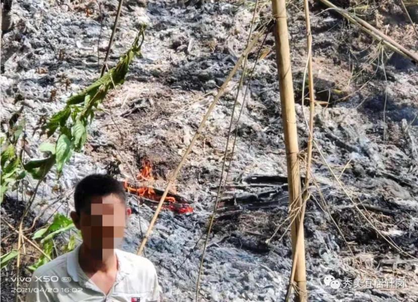 经初步了解,为芹菜塘三组村民赵某在自家田边焚烧竹棚,执法人员将其带到派出所作进一步处理。