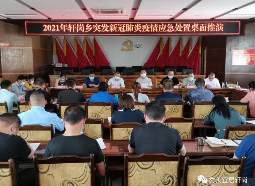 为深入贯彻落实习近平总书记关于疫情防控工作的重要指示批示精神,充分检验完善应急预案,深度评估突发情况处置能力,结合当前疫情形势,轩岗乡于4月20日组织召开了2021年轩岗乡突发新冠肺炎疫情应急处置桌面推演。市委常委、市纪委书记、市监委主任王卫东,州疾控中心主任医师李发佑,市集中隔离医学观察点建设管理工作领导小组督查指导组常务副组长、卫健局四级调研员杨连升,市疾控中心副主任王莉出席会议进行指导,乡疫情防控工作指挥部、各工作组、各村(社区)、中小学、卫生院、派出所、交警中队、市场监督管理四所参加了会议,会议由轩岗乡人大主席杨若一主持。