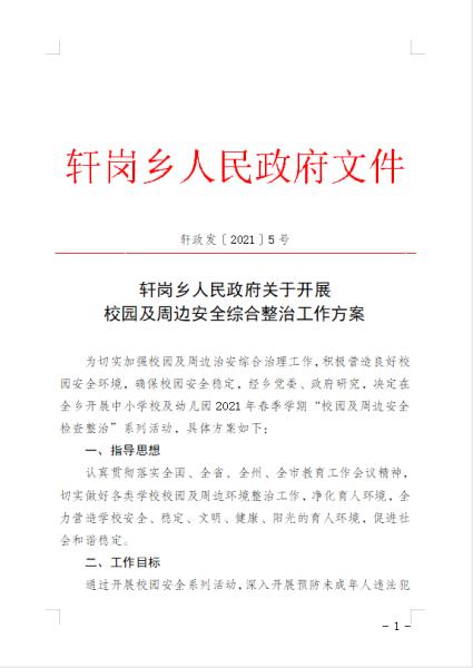 轩岗乡人民政府关于印发《轩岗乡2021年校园及周边综合治理工作方案》的通知