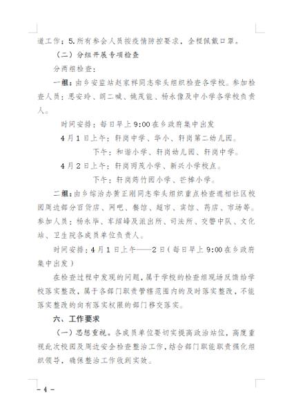 轩岗乡人民政府关于开展校园及周边安全专项检查整治工作方案