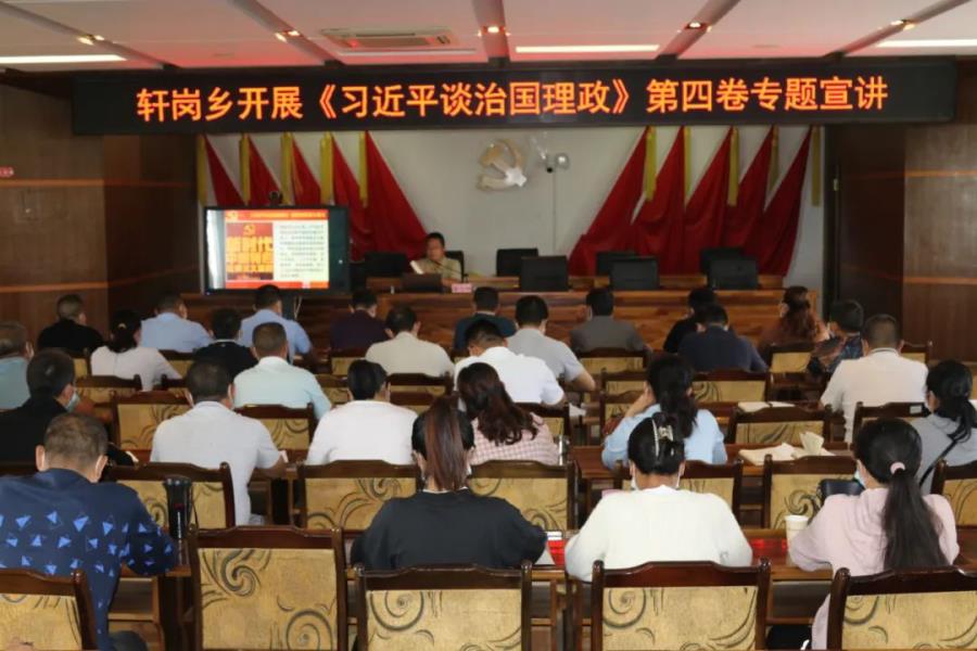 为持续学好用好《习近平谈治国理政》第四卷,10月24日,轩岗乡开展《习近平谈治国理政》第四卷专题宣讲会。此次宣讲会邀请到市委党校高级讲师秦方坤老师。轩岗乡党政领导班子、全乡干部职工、各村(社区)党总支、各驻村第一书记、乡直各部门负责人共计40余人参加会议。会议由乡党委书记丁志勇主持。