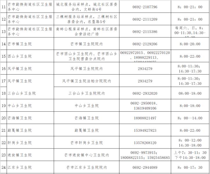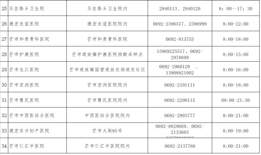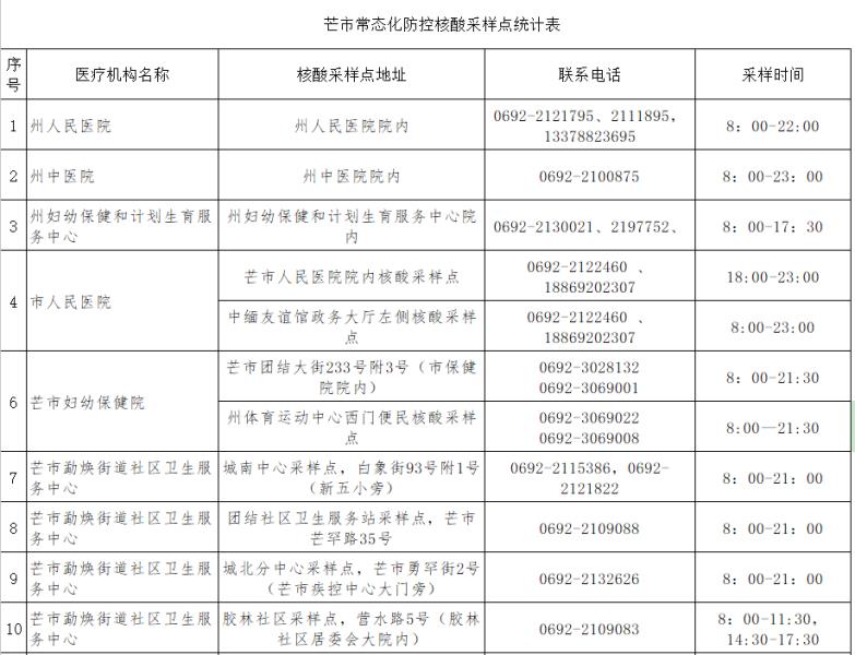 2.芒市常态化防控核酸采样点统计表