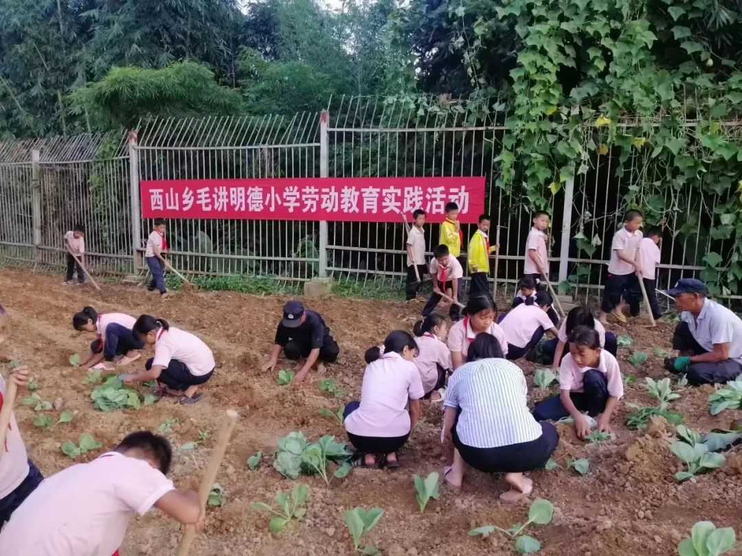 自西山乡毛讲明德小学开展劳动课程以来,收获颇丰。2016年至2023年共收获新鲜蔬菜6000斤左右,西番莲1500斤左右,玉米2000斤左右,蔬菜免费流入食堂,让学生的伙食费降低了15%,为许多贫困家庭减轻了负担。