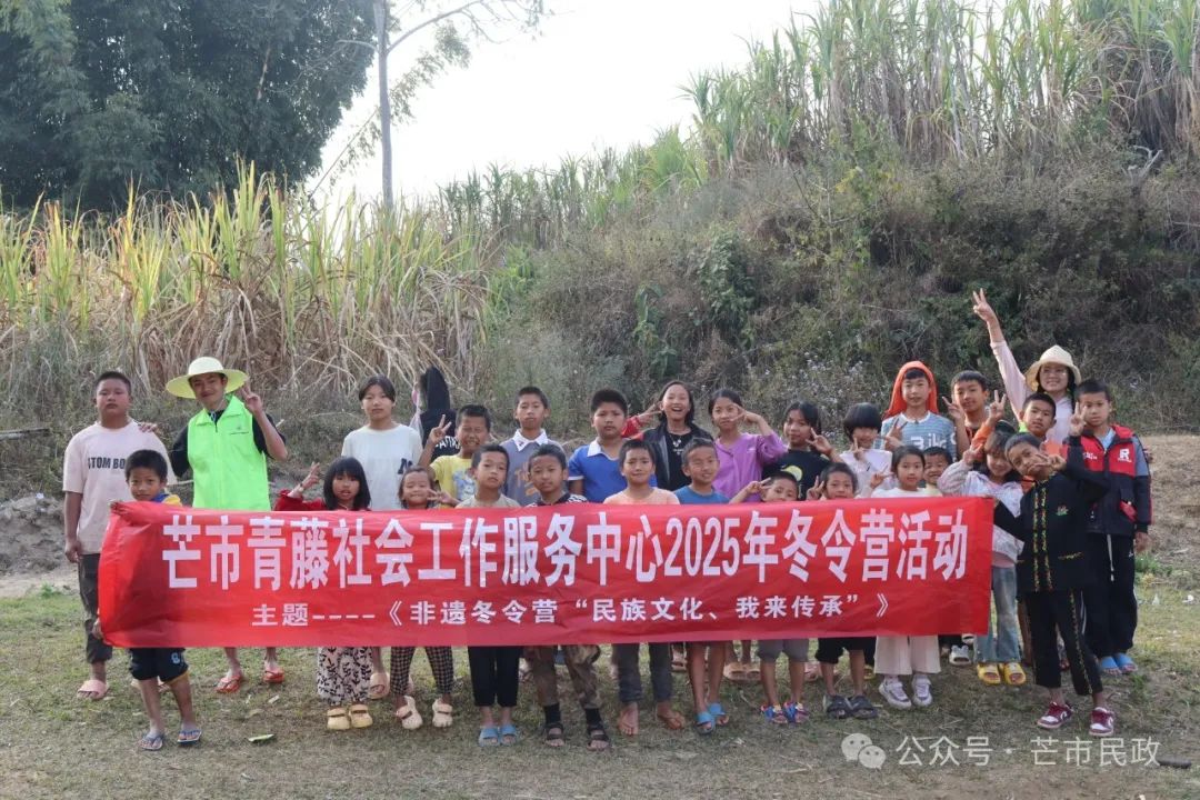 近日,芒市青藤社会工作服务中心在芒市西山乡毛讲村新时代文明实践站成功举办了“非遗冬令营——‘民族文化·我来传承’”活动。毛讲村30名儿童参与。