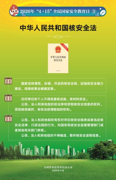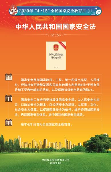 4月15日是全民国家安全教育日。家是最小国,国是千万家。国家安全教育日每年只有一天,但国家安全问题却每时每刻都值得高度重视。维护国家安全、荣誉和利益是实现国家富强、民族振兴的重要保证;是公民爱国主义精神的具体体现;是每个公民义不容辞的职责。