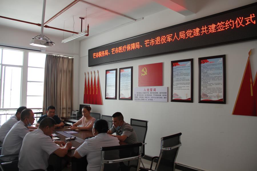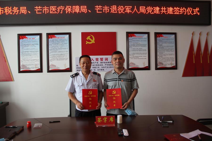 会上,市医疗保障局与芒市税务局签订了《党建引领 结对共建协议书》,宣布正式组建为共建单位,并对党建共建落地实施方案进行了讨论。