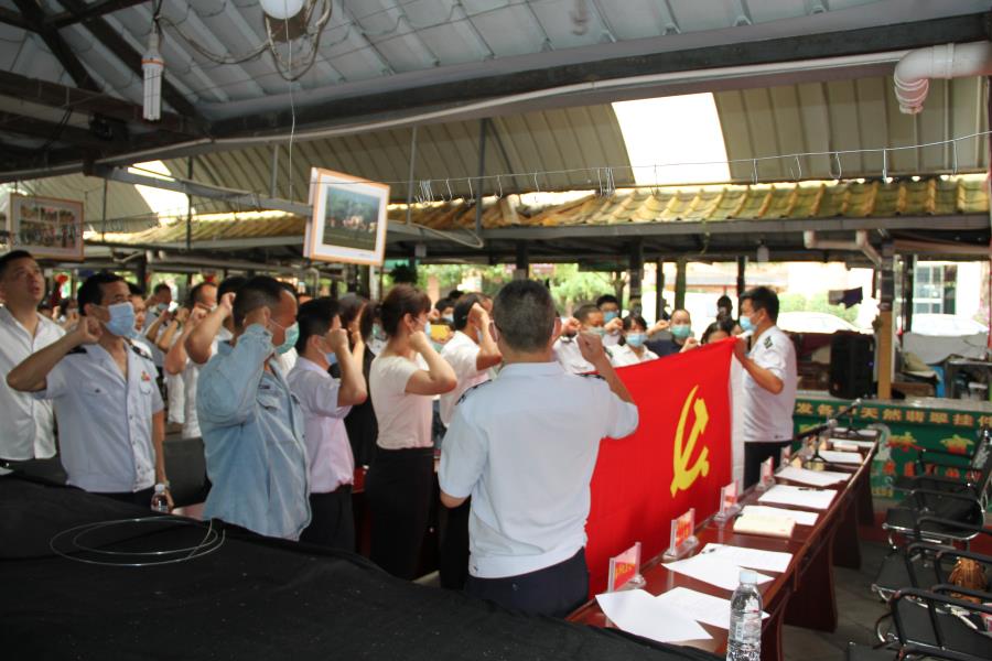 此次主题党日活动严格按照“1+6+X”方式开展,参加活动的全体党员在雄壮的国歌声中重温入党誓词,完成了交纳党费、诵读党章、评定党员积分、开展集中学习讨论等规定动作,并向5月过“政治生日”的党员发放了政治生日卡片和礼物。
