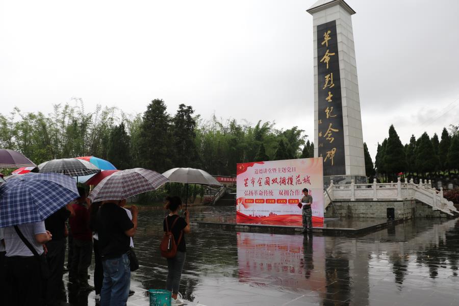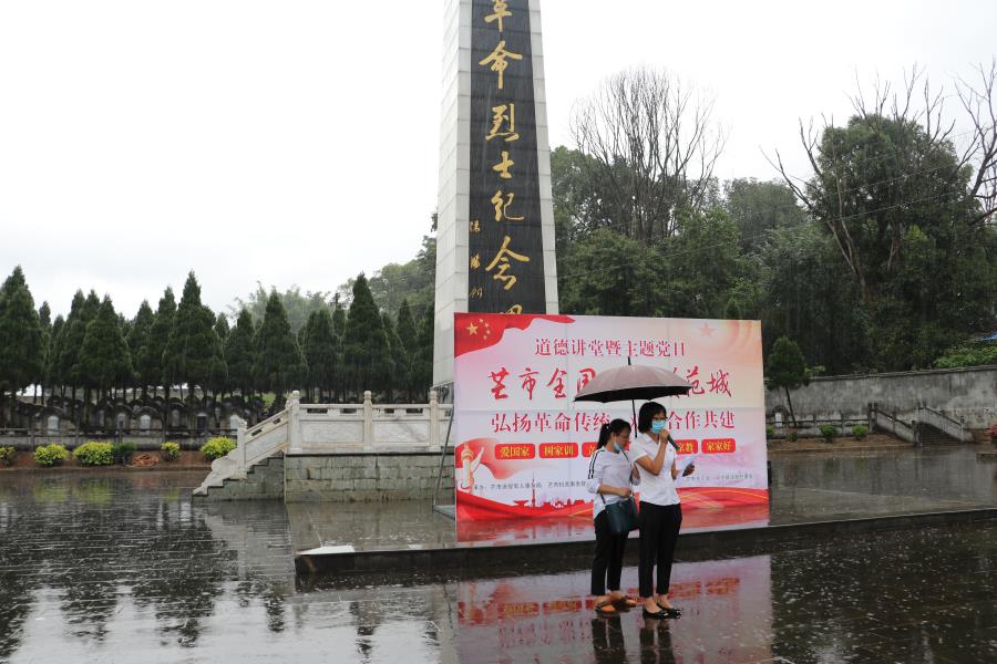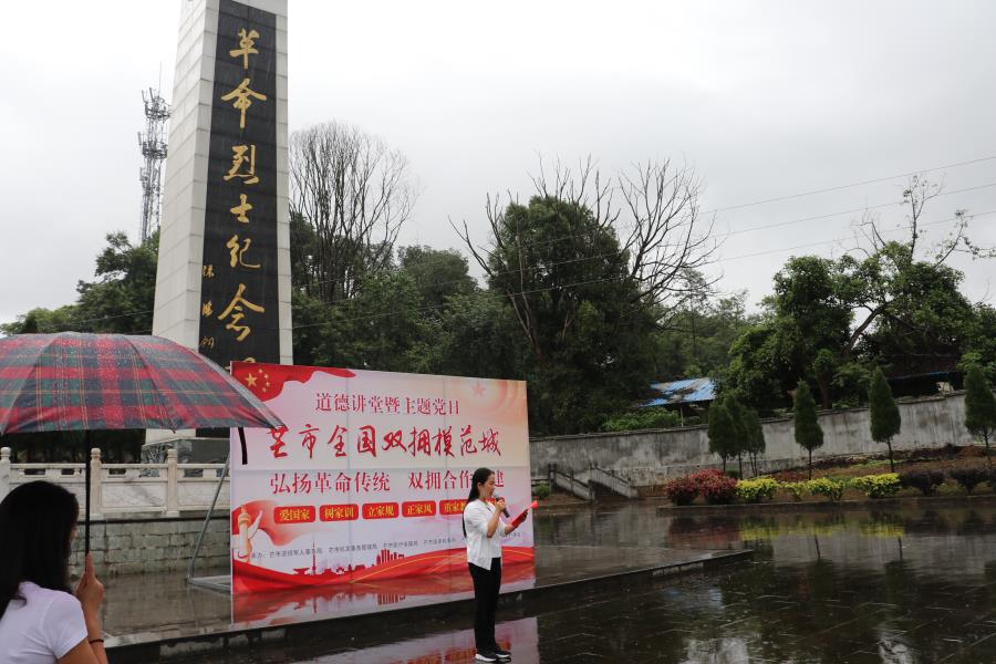 6月12日上午,芒市医疗保障局党支部联合市机关事务局、市退役军人事务局、市税务局、市总工会4家单位党支部和法帕部分党员在芒市烈士陵园开展主题为“弘扬革命传统、树家训立家规”主题党日暨道德讲堂活动。活动期间虽然阴雨绵绵,百余名党员仍坚持冒雨参加,活动严格按照“五个一”有序进行。