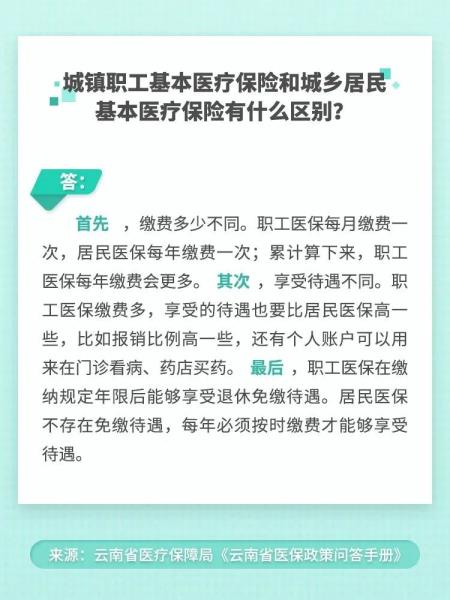 【云南省医保政策问答手册】第4问:城镇职工基本医疗保险和城乡居民基本医疗保险有什么区别?