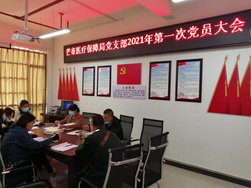 1月15日,芒市医疗保障局党支部开展2020年第一次党员大会暨民主生活会会前集中学习活动,全体党员参加会议。
