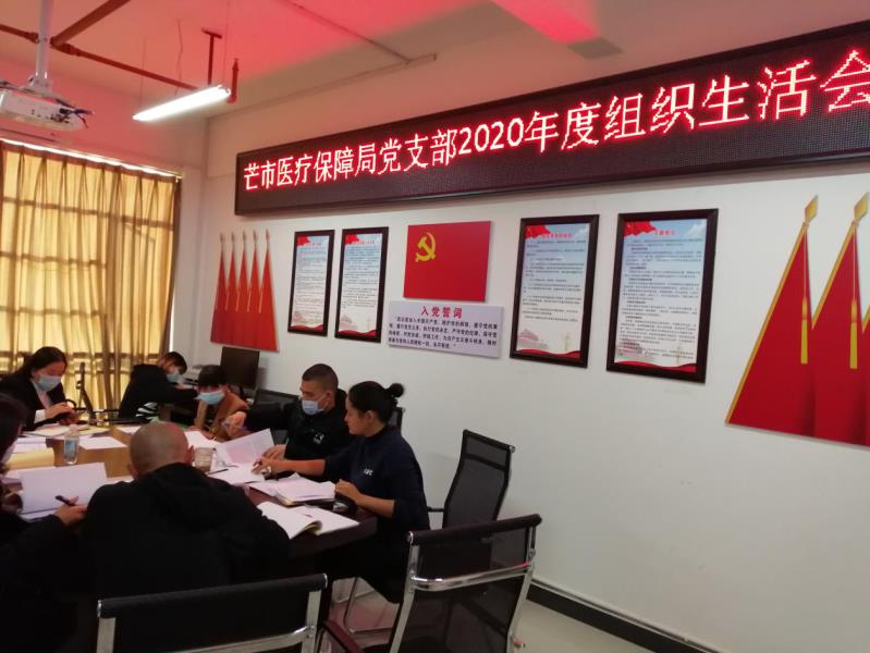 2月4日上午,芒市医疗保障局组织召开了2020年度党支部组织生活会,局机关全体党员干部共计9余人参加了会议,会议由党支部书记杨刚主持。