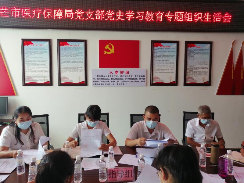 局党支部书记、局长杨刚同志指出,支部在开展党史学习教育以来取得了阶段性的成效,要以这次党史学习教育专题组织生活会为契机,认真学习宣传贯彻习近平总书记在庆祝中国共产党成立100周年大会上的重要讲话精神,并努力做好以下三方面工作:一是不断加强思想改造,提高政治素养;二是强化整治理论学习从百年党史中汲取强大的精神力量,全体党员要以昂扬的斗志积极拼搏进取,合力克难攻坚,推动医保各项工作迈上新台阶;三是明确方向抓整改,结合组织生活会上提出的批评意见,逐一梳理,认真分析,列出问题清单,完善整改措施,制定完成时限,扎实抓好整改;四是把党史学习教育成果与日常工作有机结合起来,紧紧围绕医疗保障工作,切实解决人民群众“看病难、看病贵”的问题,真正做到学党史、悟思想、办实事、开新局