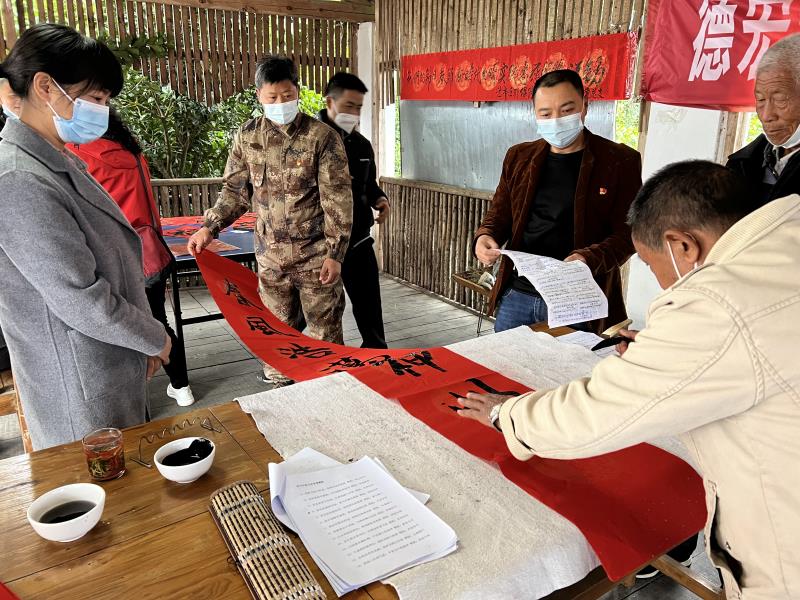 宣讲结束后,州书法协会的志愿者们在勐旺村党员活动室,将一幅幅满载着新年祝福的春联,送到村民手中,喜庆的春联充满了浓浓的年味,村民们看着祝福满满的春联喜笑颜开,欢乐不断。