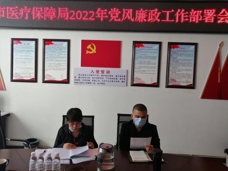 会上,党支部书记、局长杨刚对2022年党风廉政建设工作提出了两点要求:一是制定好全年工作计划。严格落实市委“党风廉政建设责任清单、廉政风险防控”清单,将党风廉政建设工作内容逐项细化,形成一级抓一级、层层抓落实的工作格局。二是着力加强干部队伍建设。全局干部职工要认真落实省、州、市委党风廉政建设要求,统筹做好疫情防控工作,加大基金监管工作力度,推进药品集中带量采购及支付方式改革工作,将党建、党风廉政建设与医保业务工作齐抓共进,进一步提升医保服务水平,不断提高群众获得感和幸福感。