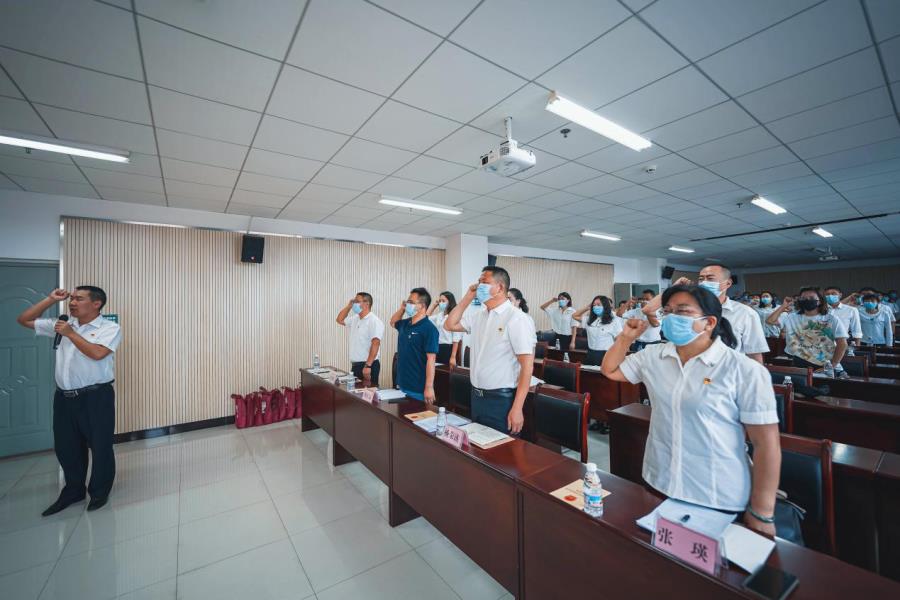 重温一遍入党誓词“忆初心”。全体党员面向党旗,高举右拳,在芒市医疗保障局党支部书记陈绍国同志的带领下重温入党誓词,铿锵的誓言唤醒了每位同志入党的初心,激励党员自觉用党员标准严格要求自己,在各自的工作岗位上忠诚履职,充分发挥先锋模范作用。