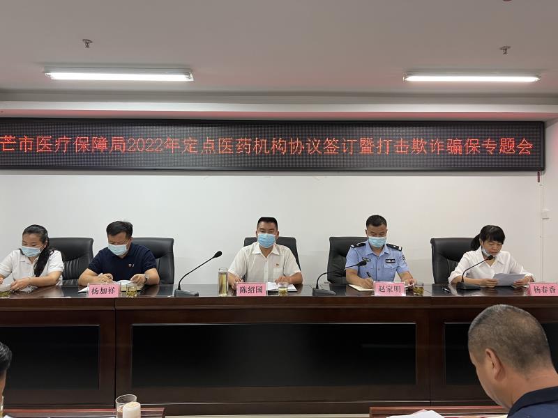 2022年5月9日,芒市医疗保障局召开定点医药机构服务协议签订暨打击欺诈骗保专题会,会议由芒市医疗保障局副局长杨春香同志主持,芒市公安局、芒市卫生健康局分管领导、芒市辖区内28家定点医疗机构的主要负责人、部分定点药店代表等共计40余人参会。