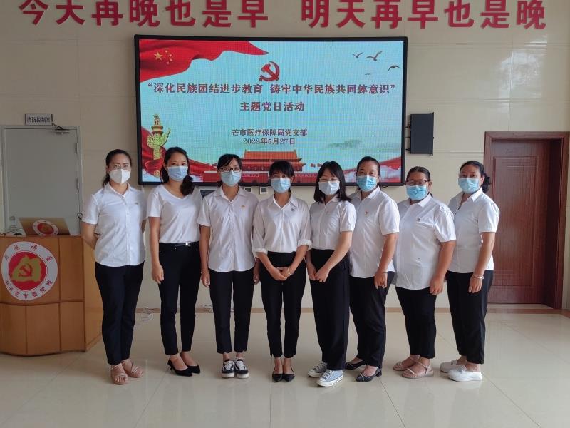 为全面深入贯彻落实习近平新时代中国特色社会主义思想和中央民族工作会议精神,加强引导和教育党员牢固树立休戚与共、荣辱与共、生死与共、命运与共的共同体理念,铸牢中华民族共同体意识,在建设沿边民族团结进步示范市中发挥党组织的坚强战斗堡垒作用,发挥党员的先锋模范作用,促进党组织和党员成为维护团结稳定、推动共同富裕的一面旗帜,5月27日芒市医保保障局党支部开展“深化民族团结进步教育 铸牢中华民族共同体意识”主题党日活动。