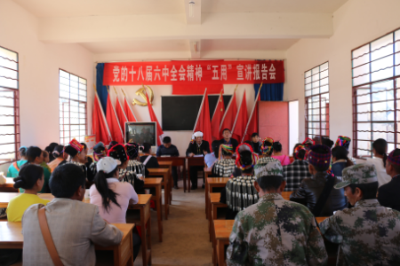 2016年12月16日,德宏州“五用”宣讲团成员、州纪委第七纪工委监察分局副书记何勒弄将党的十八届六中全会精神带到中山乡芒丙村委会老官寨村民小组,为芒丙村挂村包组领导干部、少数民族群众、缅籍通婚妇女以及民兵等50余人带来了一场精神的“洗礼”。